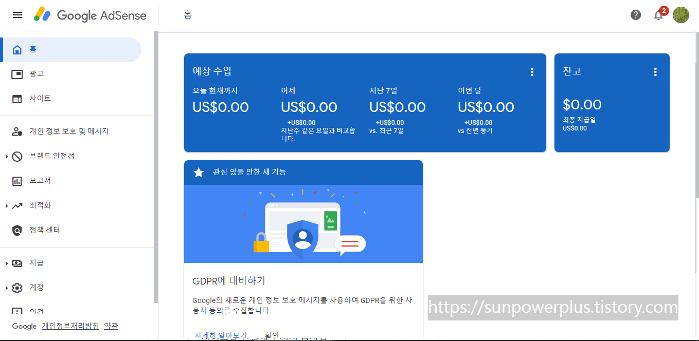 GDPR에 대비하기라는 박스도 생기는게 제 블로그는 당연히 한국사람께서만 보시니까